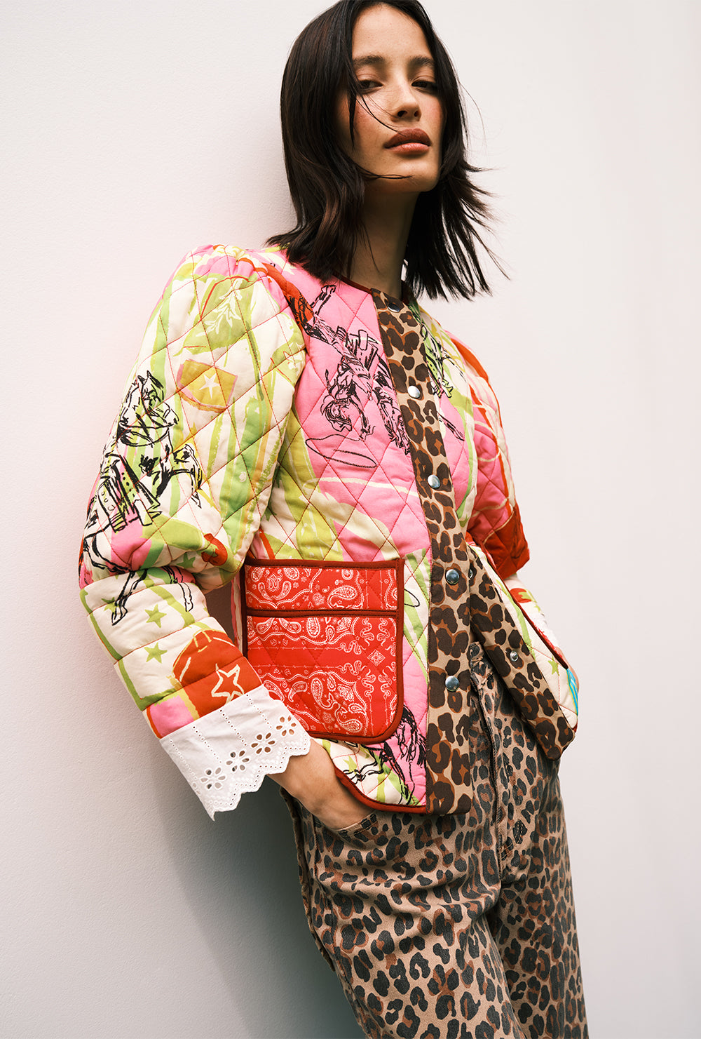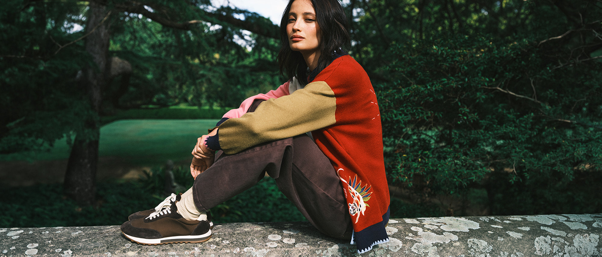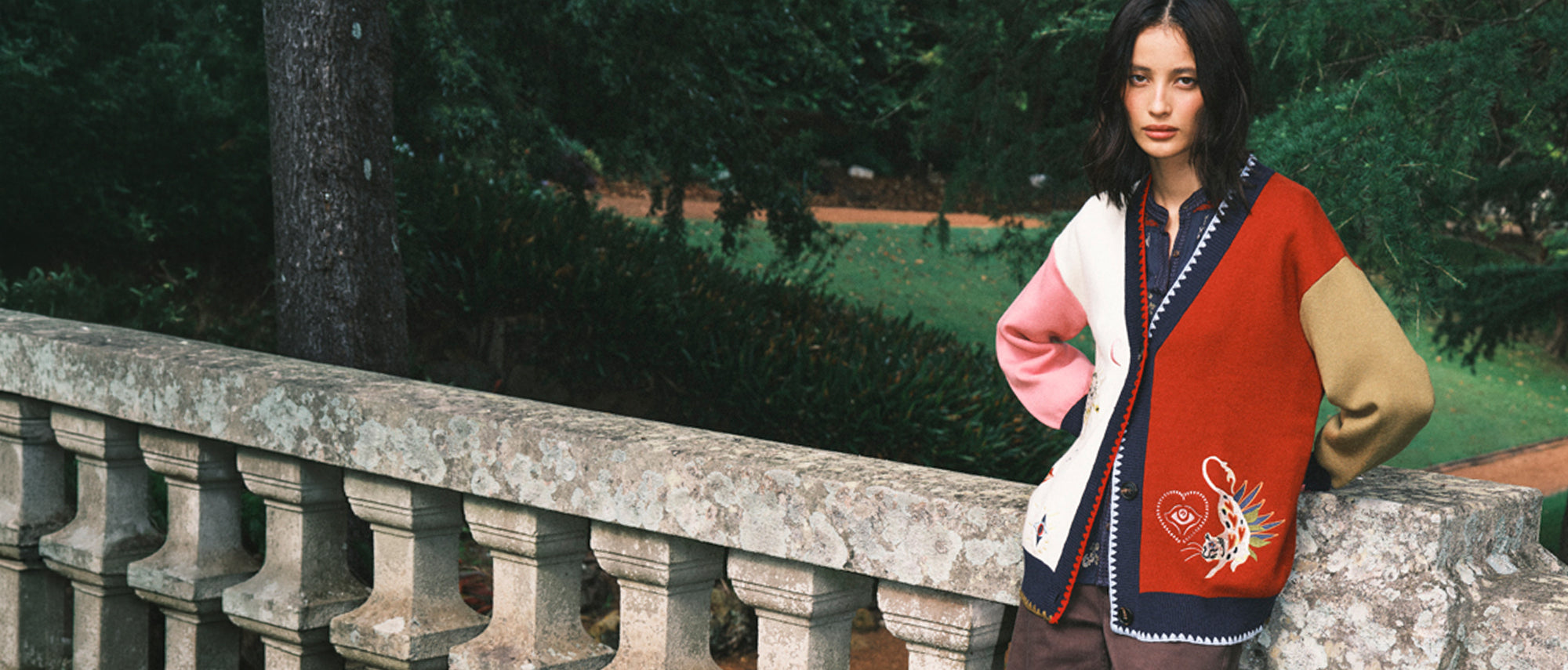 Never Fully Dressed’s colour-block cardigan is spun for statement layering, finished with bold embroidery and contrast trims. Throw it over denim now, then over slip dresses later; it’s the kind of knit that makes the outfit.