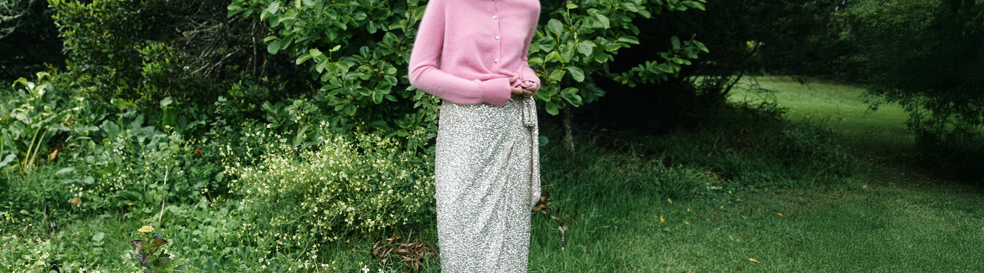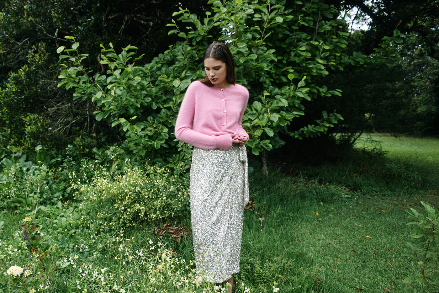 The Forme’s curated edit of Never Fully Dressed ranges from classic women’s button-ups and graphic t-shirts to luxurious velvet blazers. Highlights across the edit include the quintessential ‘Jaspre’ wrap skirt in shimmering silver sequin, fine gold plissé, and stunning black vegan leather.