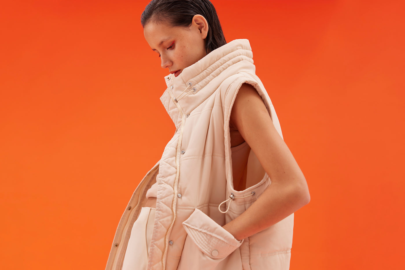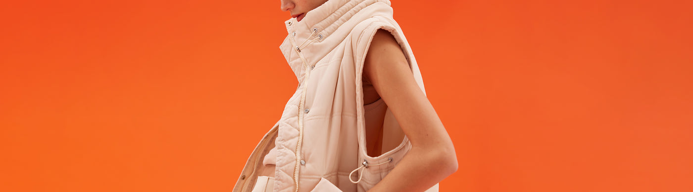 Note the label’s bestselling Jupiter Puffer in new season pop-of-colour shades.