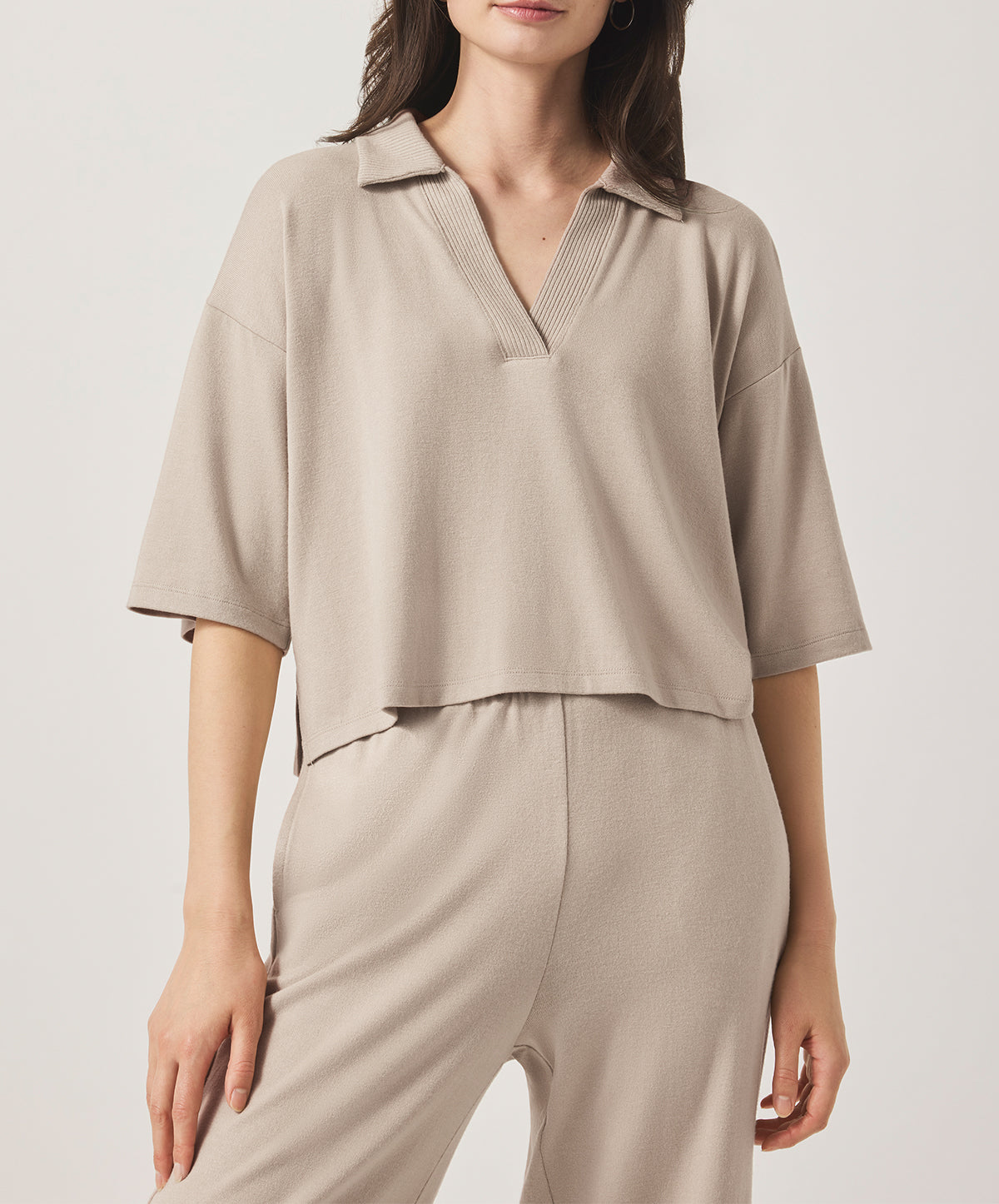 A comfortable way to look smart, Splendid’s Brooke Polo is made from stretch crepe jersey that has a soft and smooth hand-feel.