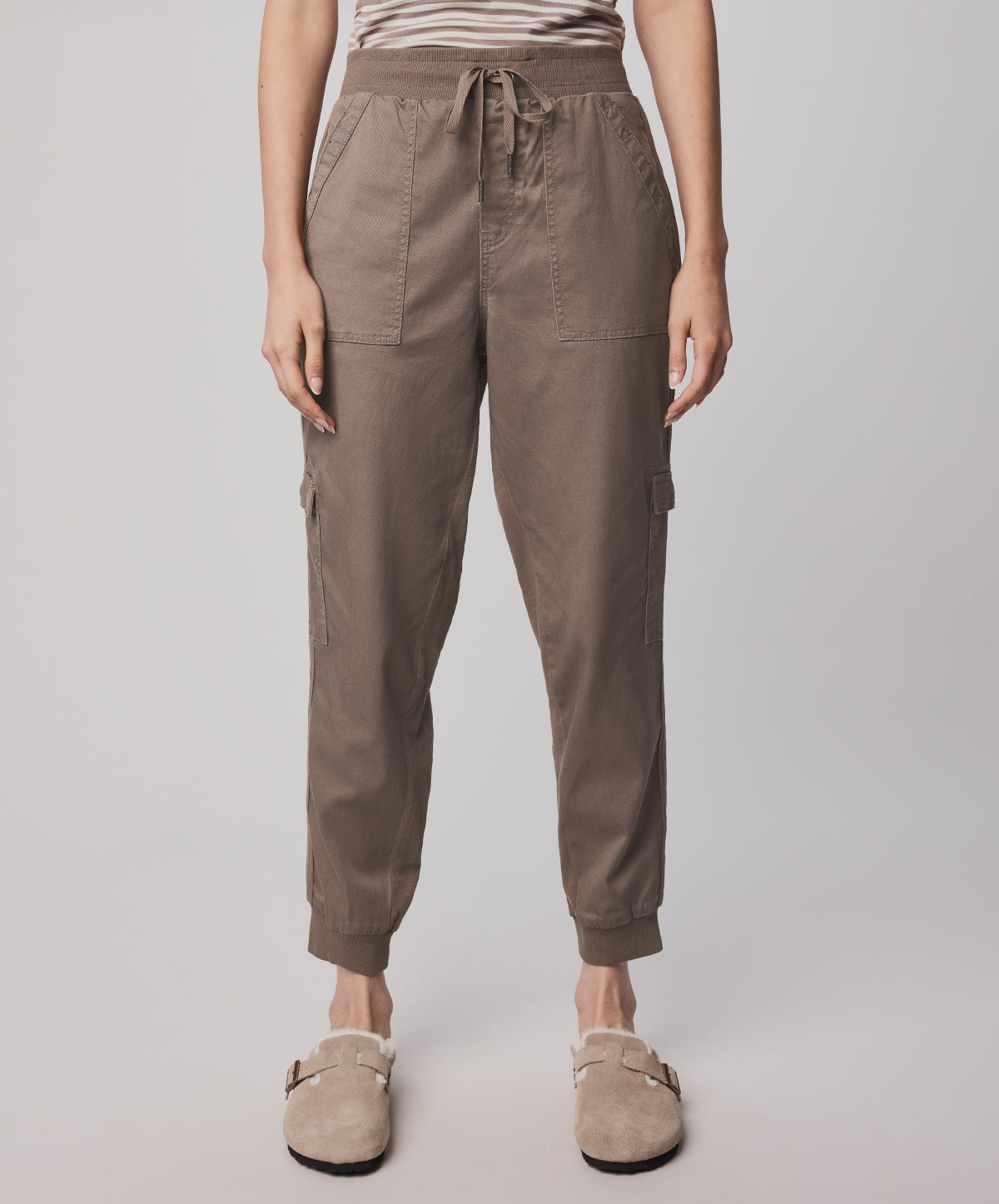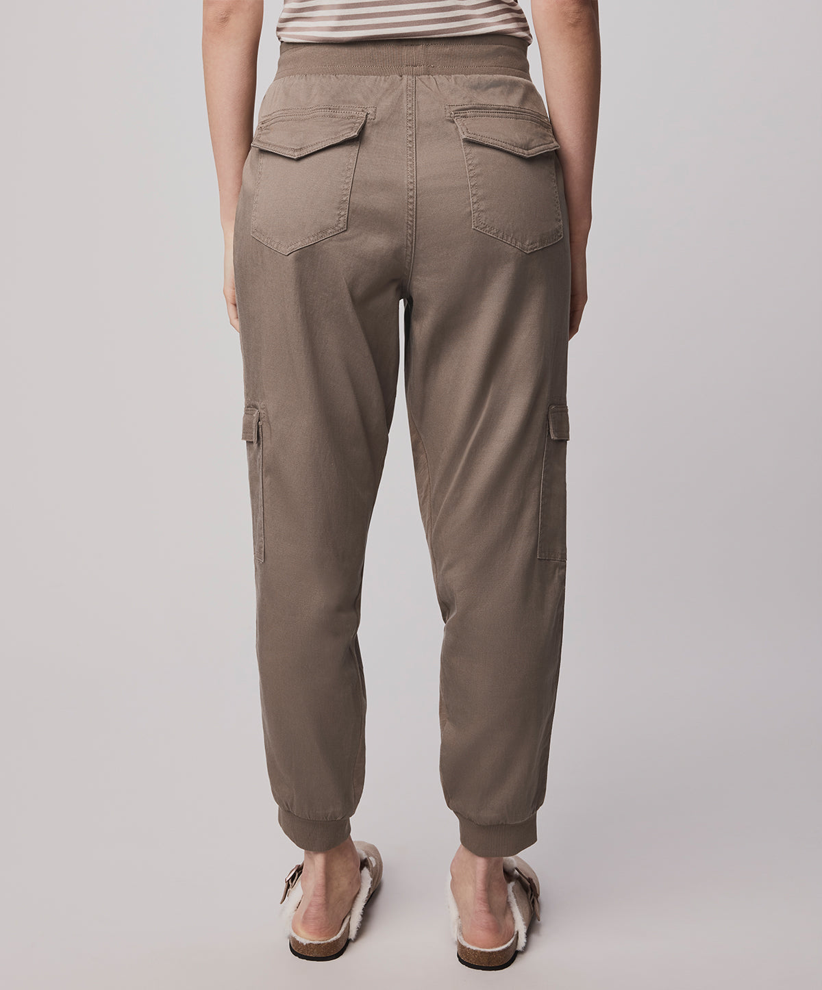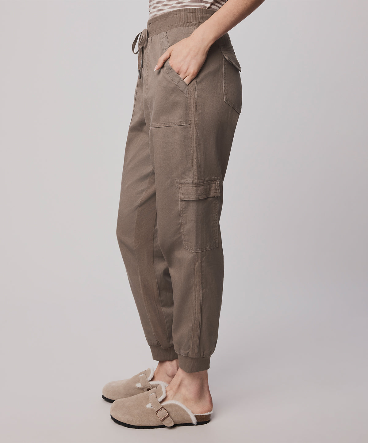 Crafted from a stretch cotton-blend, these cargo-inspired pants balance softness with structure, offering all-day ease and movement. Cut to a relaxed silhouette, they feature cargo flap pockets, ribbed cuffs, and a drawstring waistband that cinches comfortably at the waist.