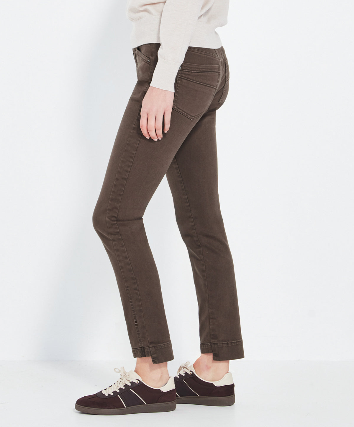 Cropped hem falls to above the ankle