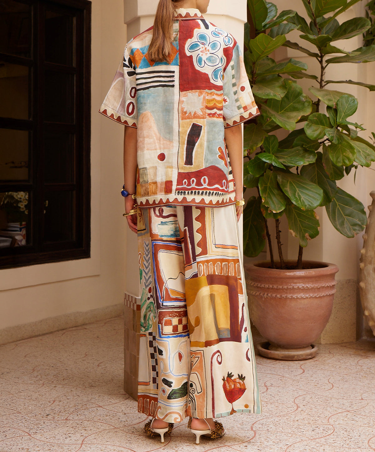 Rendered in richly expressive brushstrokes and painterly charm, ALÉMAIS’ Michelle Shirt is part of the label’s exclusive collaboration with Marrakech-based studio LRNCE.