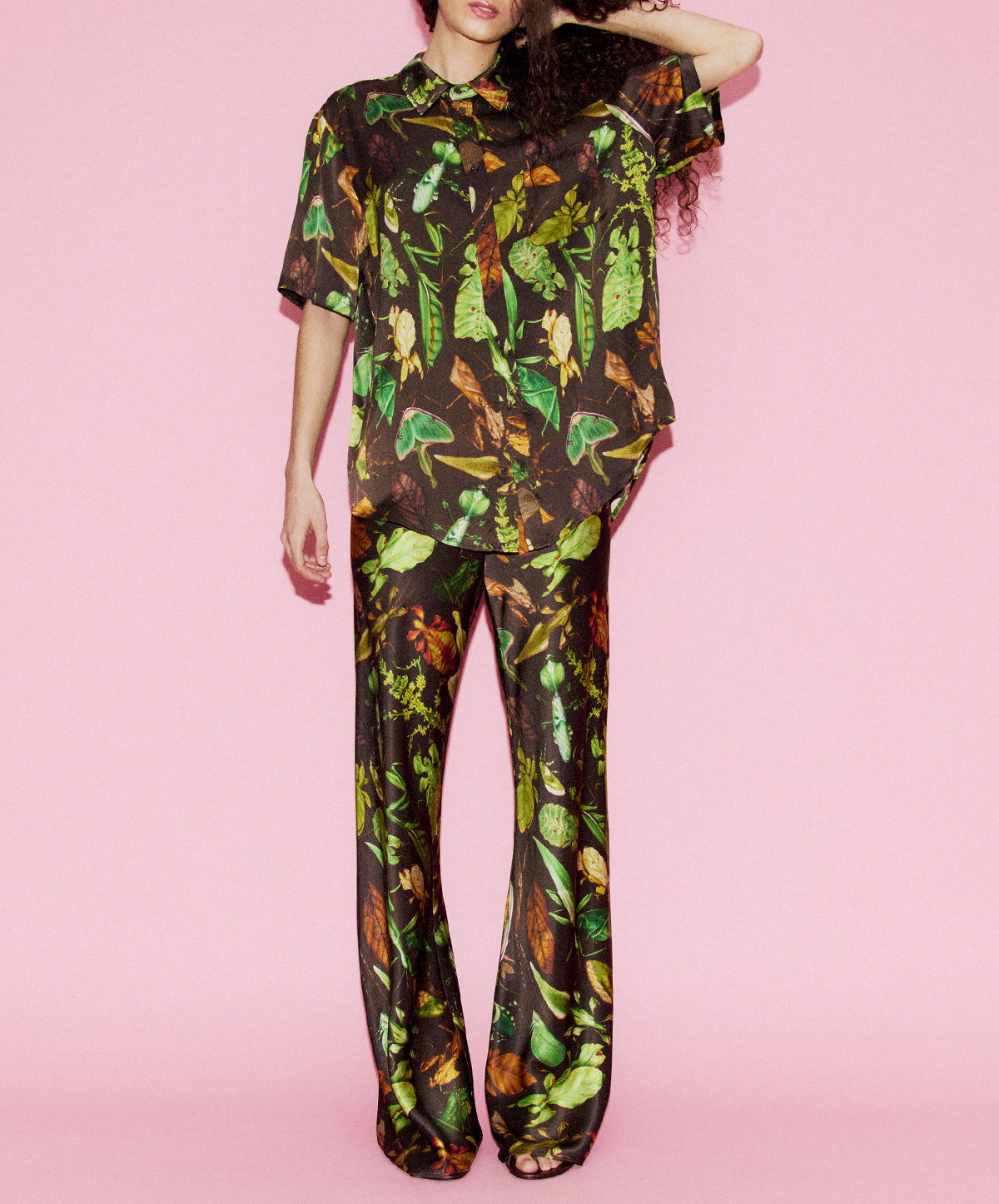 Designed as part of the ‘Wonderland’ collection, “Bug Camo” encapsulates Silk Laundry’s fascination with transformation and perception. Rendered in earthy greens, soft ochres, and deep umbers, the print blurs the boundary between flora and fauna—inviting a second glance, and then a third. Precision meets illusion in a visual narrative that feels both organic and otherworldly.