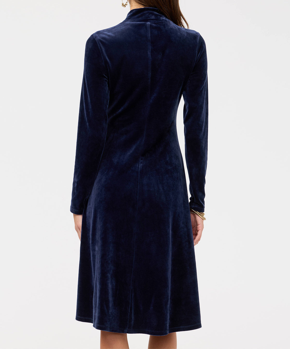 Johnny Was’ Velour Mock Neck Dress in ‘Midnight’ offers a refined take on bohemian elegance.